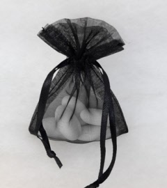 Gastgeschenke Hochzeit Chiffonsäckchen befüllt mit 5 weißen Hochzeitsmandeln schwarz